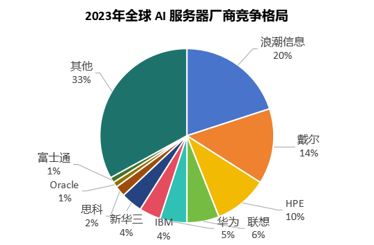 产值的迅猛增长,让众多企业争相涌入这一赛道。在全球AI服务器市场中,浪潮信息以其强大的市场份额占据领先地位,戴尔、惠普、联想、华为、IBM、新华三等品牌也各自拥有一定的市场份额。在国内市场,浪潮信息的出货量更是接近总量的一半,达到了47%,显示出其强大的竞争力。